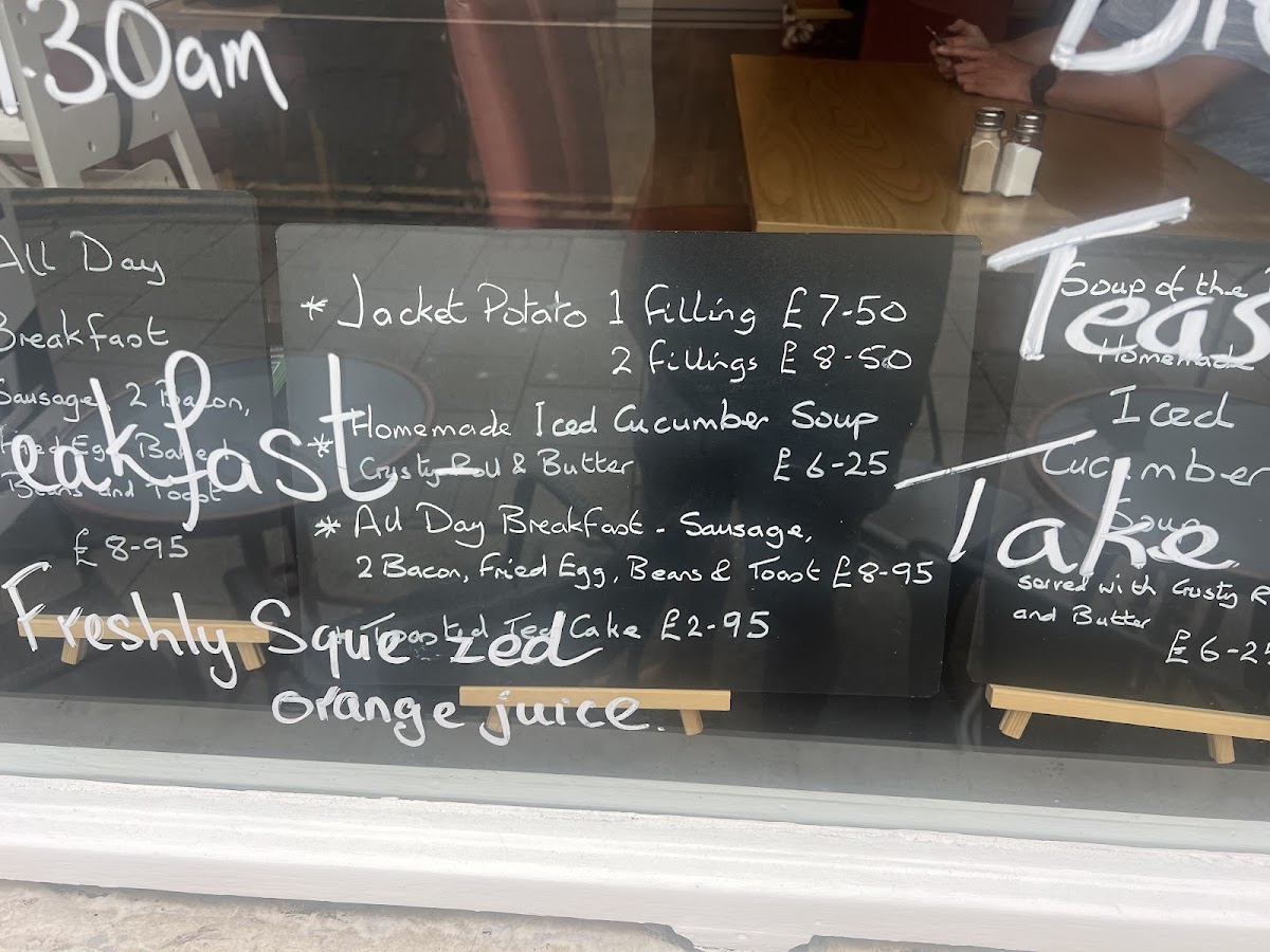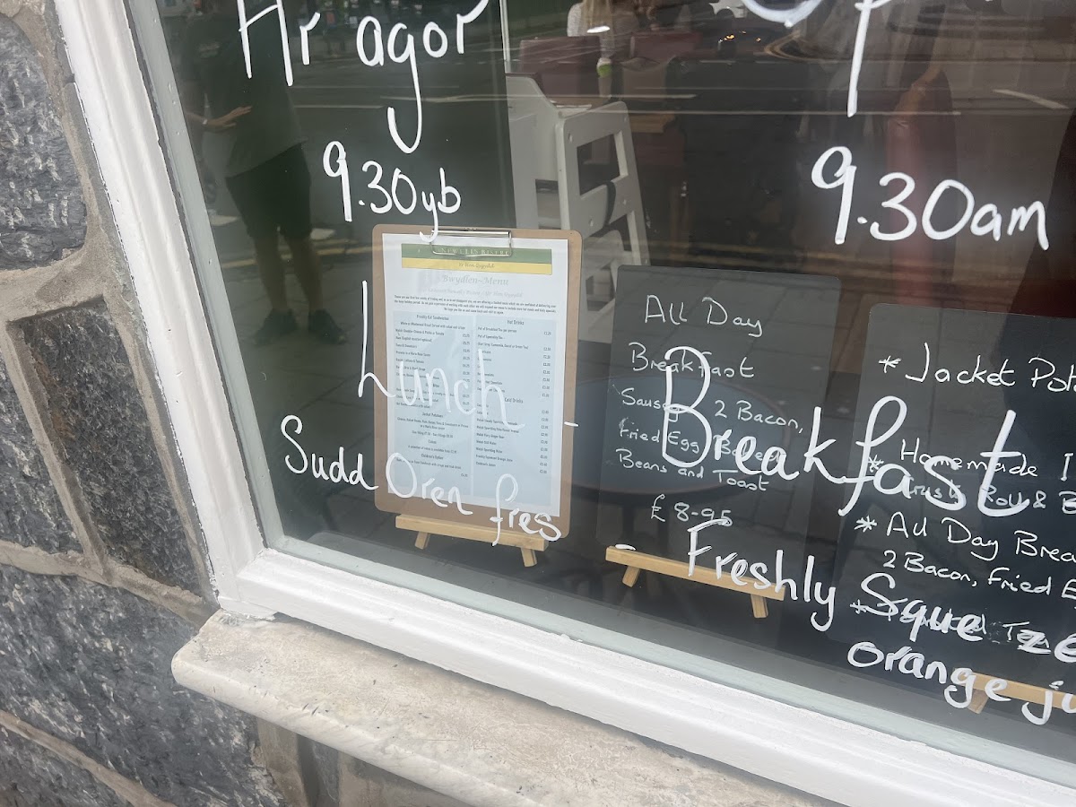 Overall, the menu is structured to provide a variety of options ranging from quick sandwiches and light bites to more substantial breakfasts, accommodating different dining needs in a cafe setting.