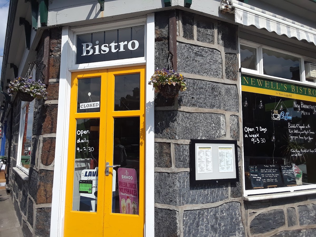 The menu at Newell's Bistro offers a variety of options suitable for breakfast, light meals, and casual dining throughout the day. It features freshly cut sandwiches with a range of fillings including Welsh cheddar cheese & pickle or tomato, ham, tuna & sweetcorn, prawns in Marie Rose sauce, bacon with lettuce and tomato, bacon with brie and black grape, and chicken with bacon, mayonnaise & lettuce.